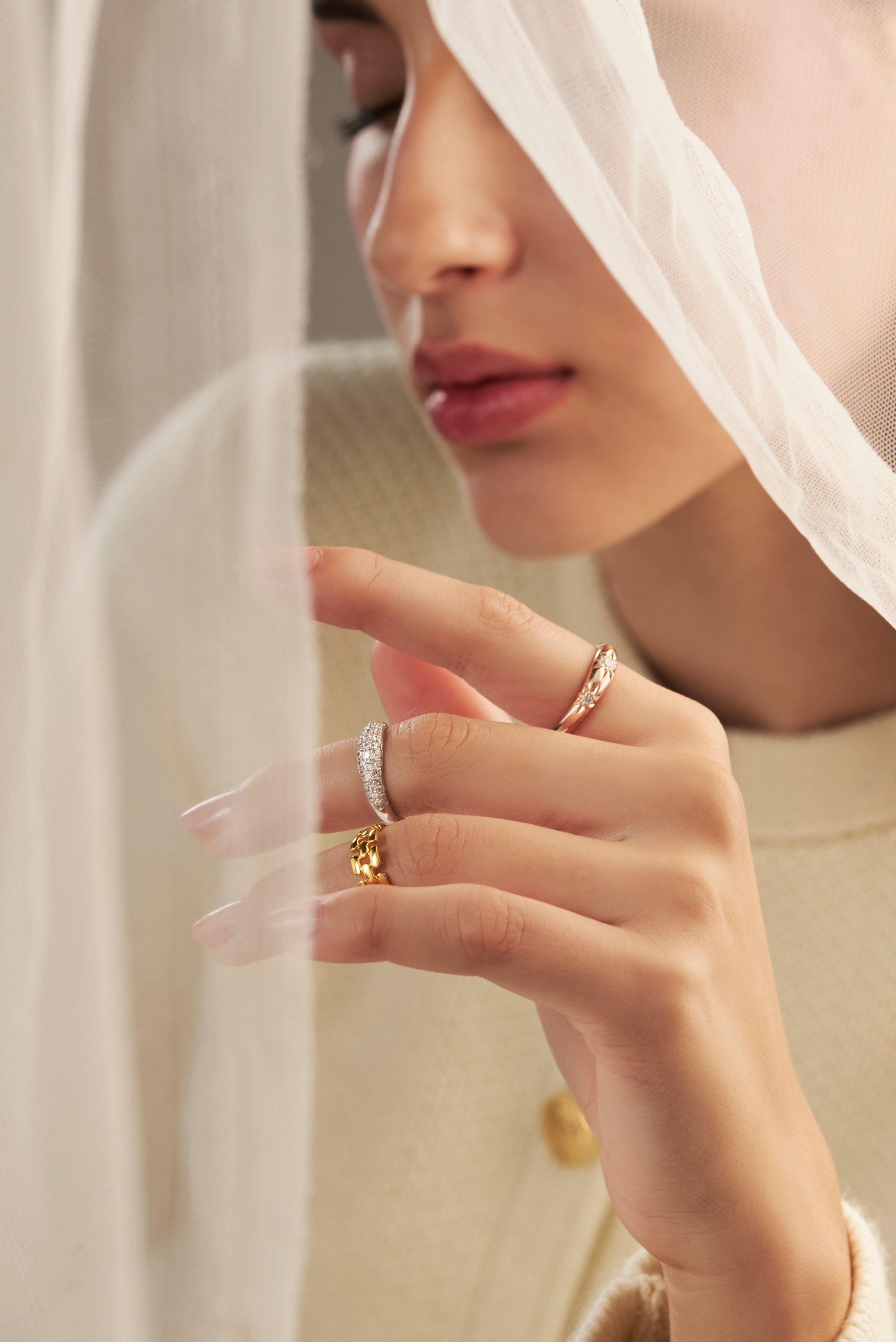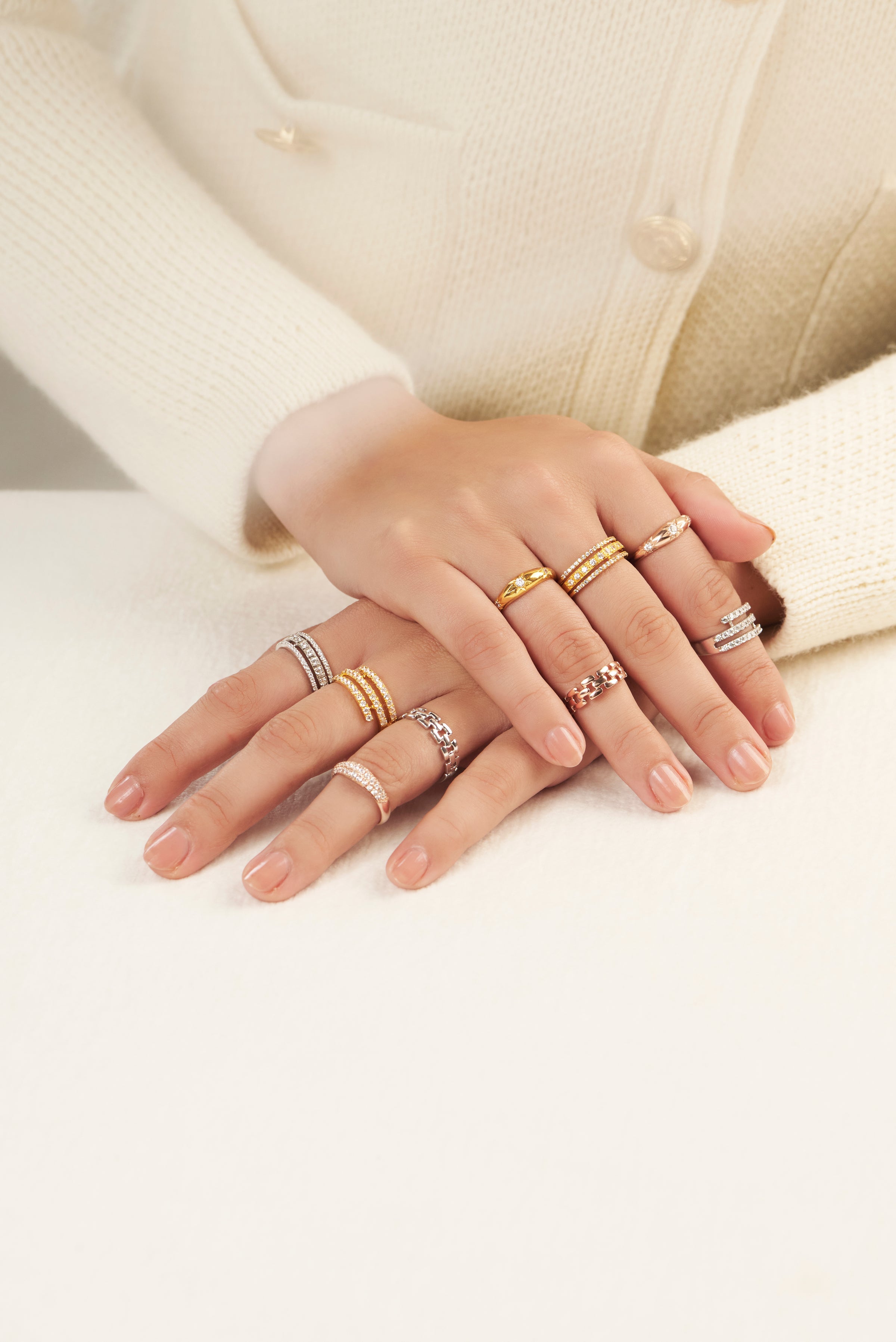 Hand-picked, premium zirconia stones placed delicately in the middle of the three star shapes. It is a dome-shaped ring, with the curved edge on a height.